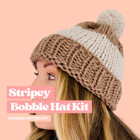 KNITTING KIT - Stripy Bobble Hat