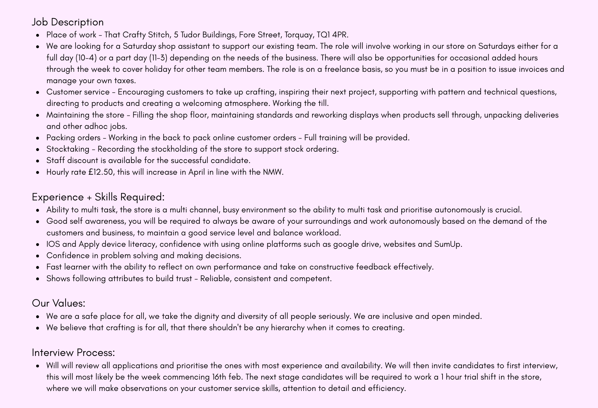 SATURDAY SHOP ASSISTANT