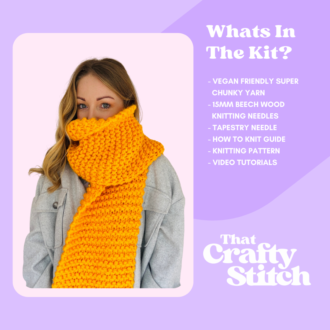 Knitting Kit - Chunky Knit Stitch Scarf Kit - Learn To Knit