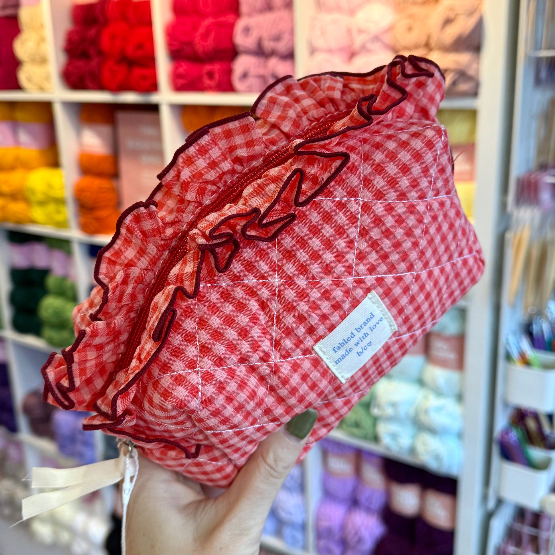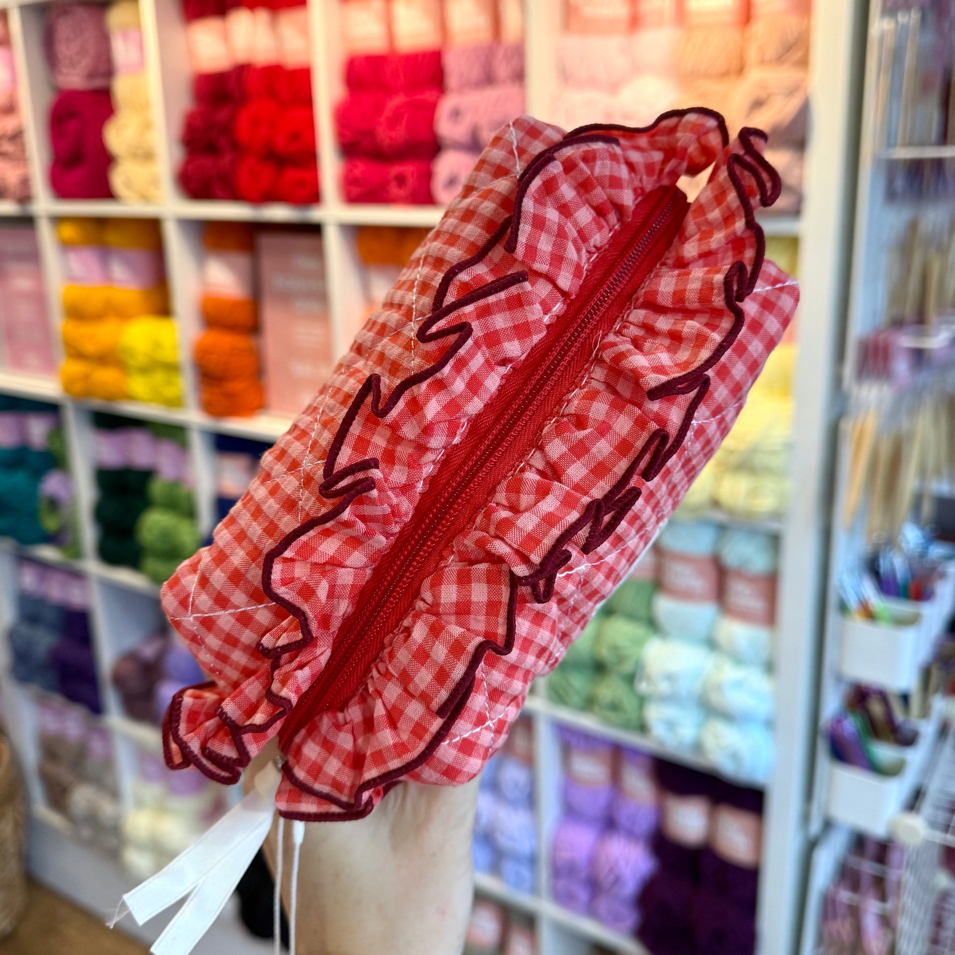 Keep your craft tools safe with this stunning frilly mini project bag, ideal for crochet hooks, circular needles, stitch marker storage and more.
